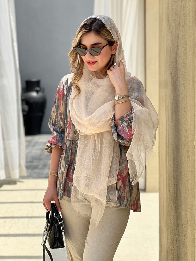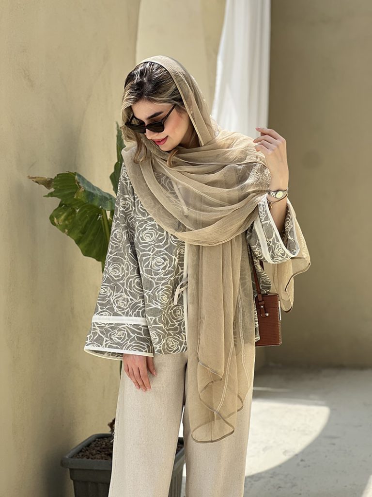 شال اداری تابستانی: شالهای نخی، حریر و لینن را انتخاب کنید که سبک، خنک و تنفسپذیر هستند.