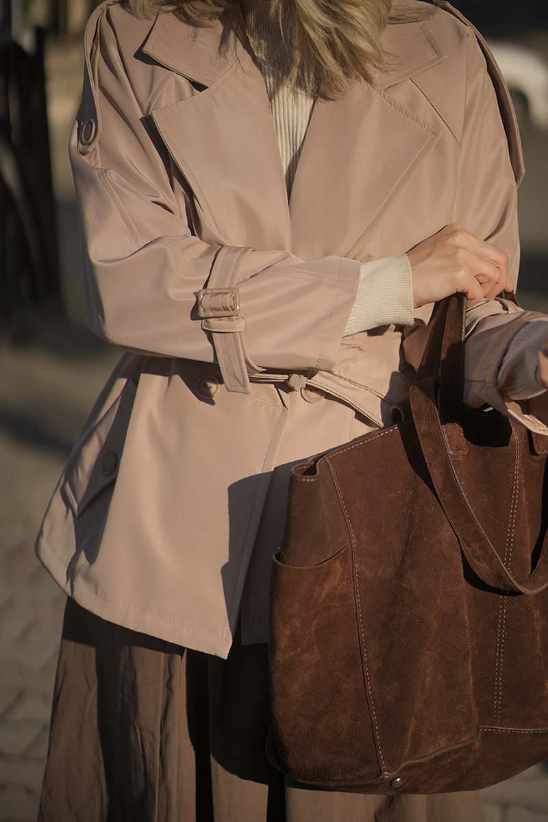 طراحی یقه انگلیسی کلاسیک، جلوه ای رسمی و در عین حال مینیمال به این ترنچ کت داده و ان را به گزینه ای مناسب برای محیط کار،قرارهای روزانه،استایل شهری و حتی سفر تبدیل کرده است.مناسب برای ست شدن با انواع شلوار پارچه ای ، جین، واید، مام فیت و حتی دامن های ساده.