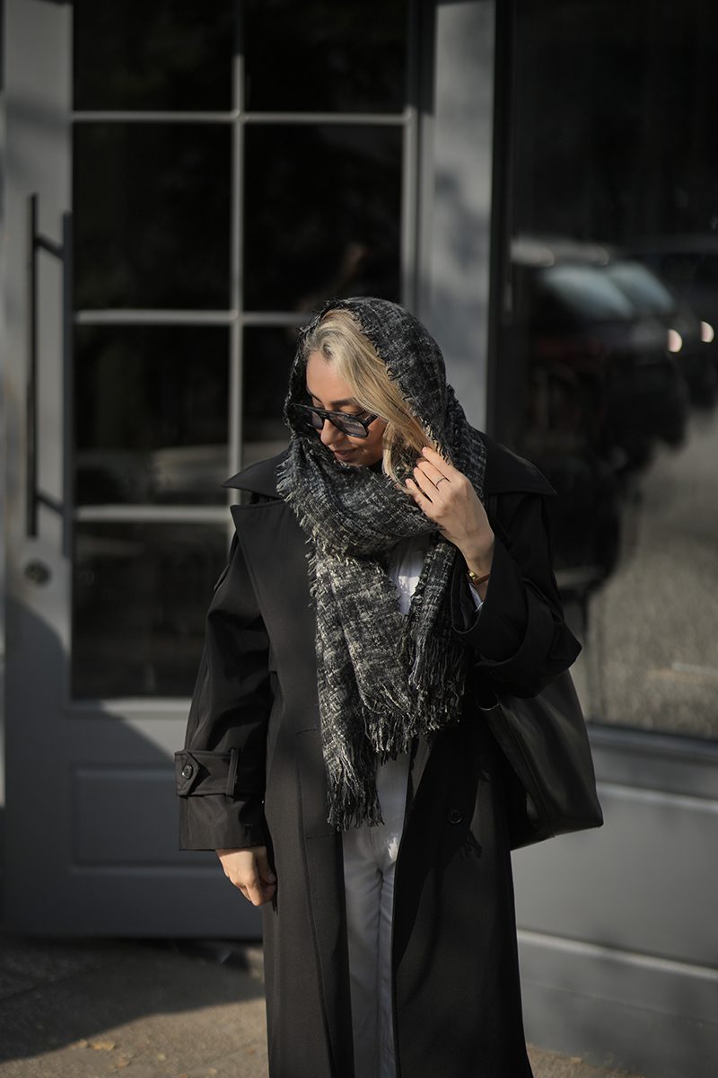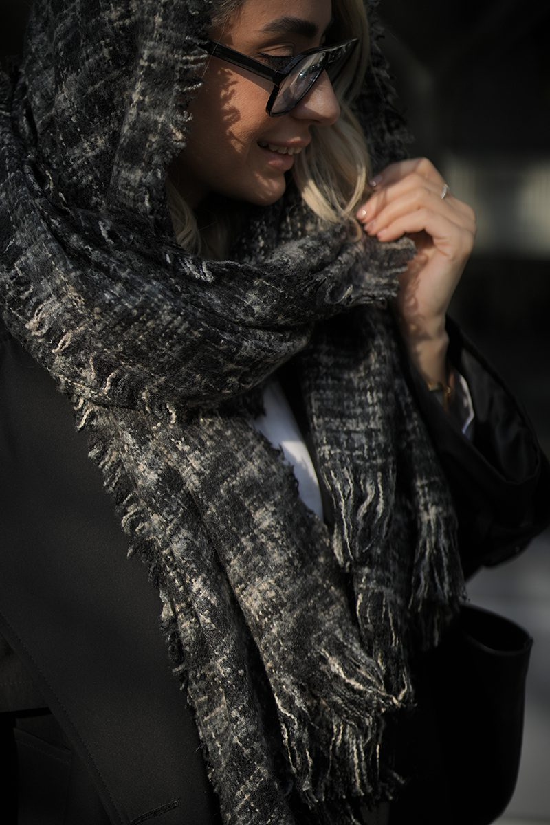 شال چهارخونه بافت برای استایل مینیمال زمستانی